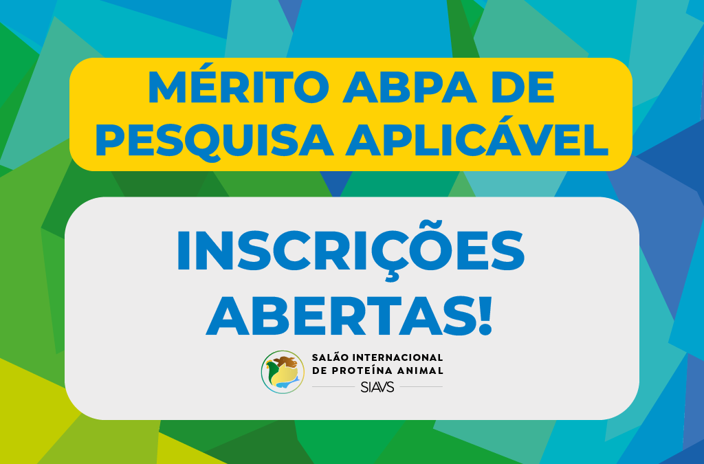 Estão abertas as inscrições para o Mérito ABPA de Pesquisa Aplicável, reconhecimento científico que a Associação Brasileira de Proteína Animal (ABPA) promoverá durante o SIAVS 2026 – Salão Internacional de Proteína Animal, maior evento da avicultura e da suinocultura do Brasil, que será realizado entre os dias 04 e 06 de agosto, no Distrito Anhembi, em São Paulo (SP).